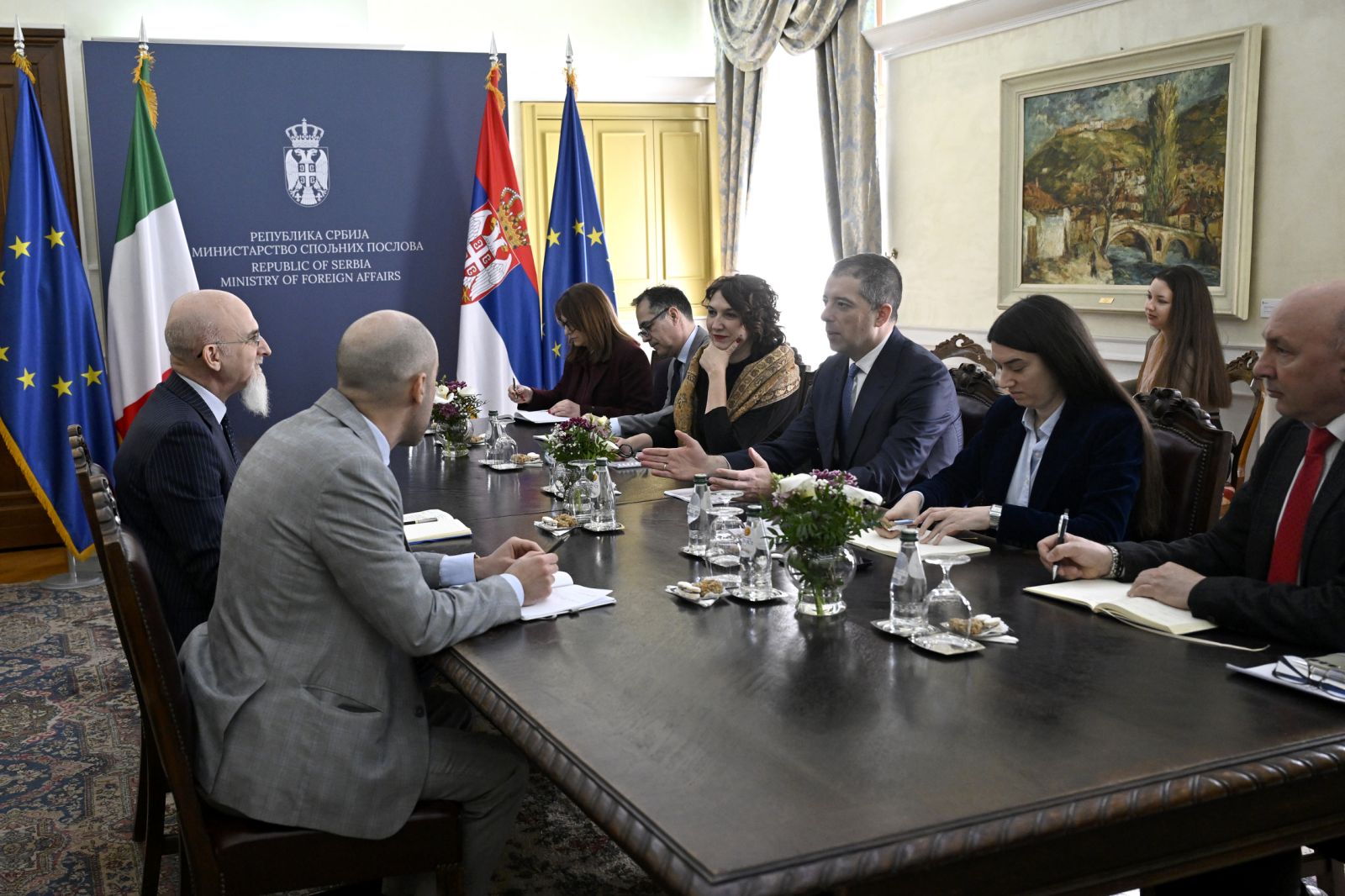 Министар Ђурић је поновио став да чланство у Европској унији остаје стратешко опредељење и приоритет спољне политике Републике Србије, изразивши захвалност на снажној подршци Италије том процесу. Нагласио је да интеграција Србије и осталих земаља Западног Балкана још више добија на значају у контексту актуелних геополитичких изазова и оружаних сукоба у више региона света. Нагласио је да Србија настоји да до краја 2026. године спроведе неопходне реформе и испуни смернице и препоруке, како би била спремна за чланство у ЕУ.