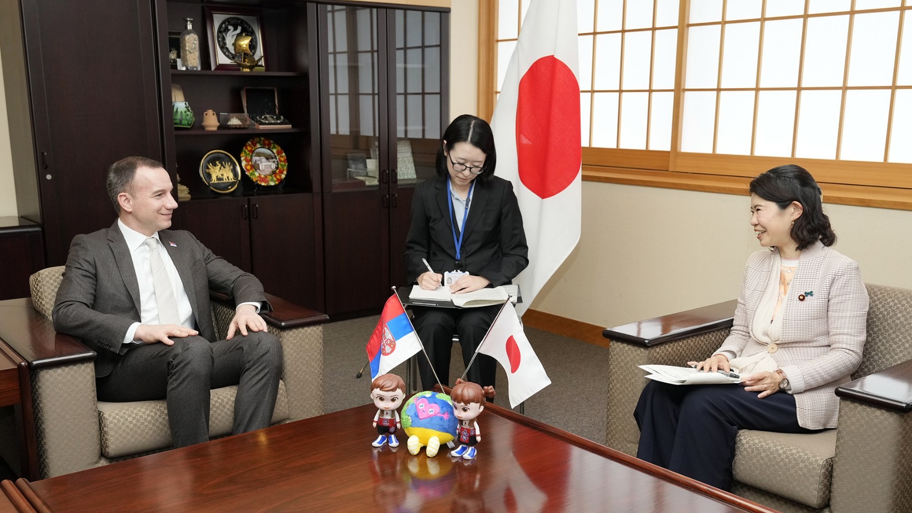 Jović confers with State Minister Ayano Kunimitsu