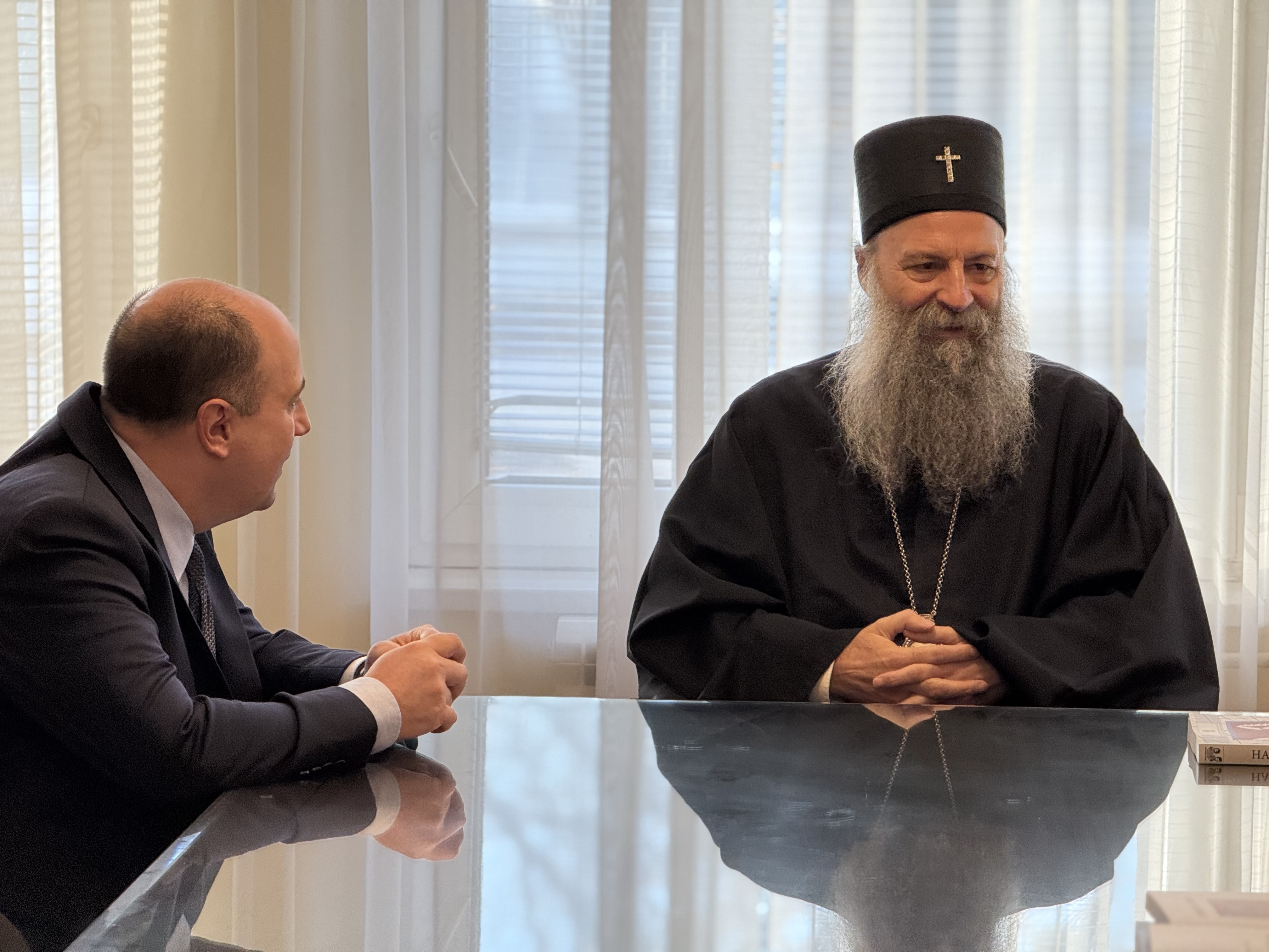 Kozarev conveyed the greetings of Minister Marko Đurić and briefed the Patriarch on the promotion of the second volume of the book “Our Testimony – Women Victims of War from Republika Srpska 1992–1995,” to be held today at the premises of the Ministry of Foreign Affairs. He noted that, in addition to the Ministry, the implementation of the project—conducted in cooperation with the Association of Women Victims of War—was supported by the aforementioned institutions, with the engagement of Ambassador Vranješ. He emphasized that the primary objective of the joint efforts invested in the preparation of the book was guided by