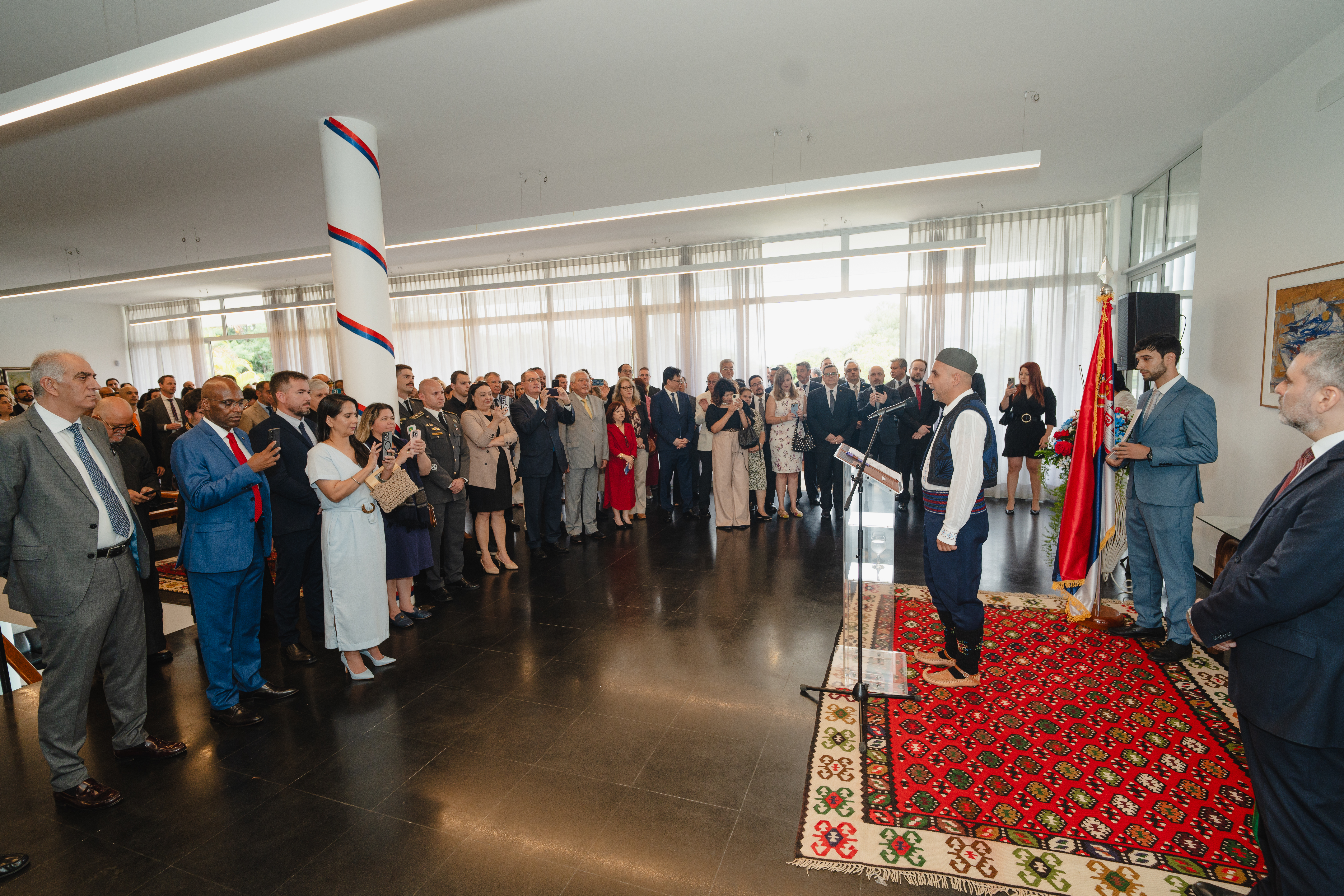 Na prijemu je govorio načelnik Odeljenja za Evropu u MIP-u Brazila, ambasador Flavio Goldman, koji je istakao da je kao naslednica bogate kulturne i istorijske tradicije, Srbija mesto susreta civilizacija, religija i trgovačkih puteva, te da je tokom vekova, njen narod je pokazao izuzetnu otpornost pred izazovima, očuvavši svoj identitet, jezik i kulturu.