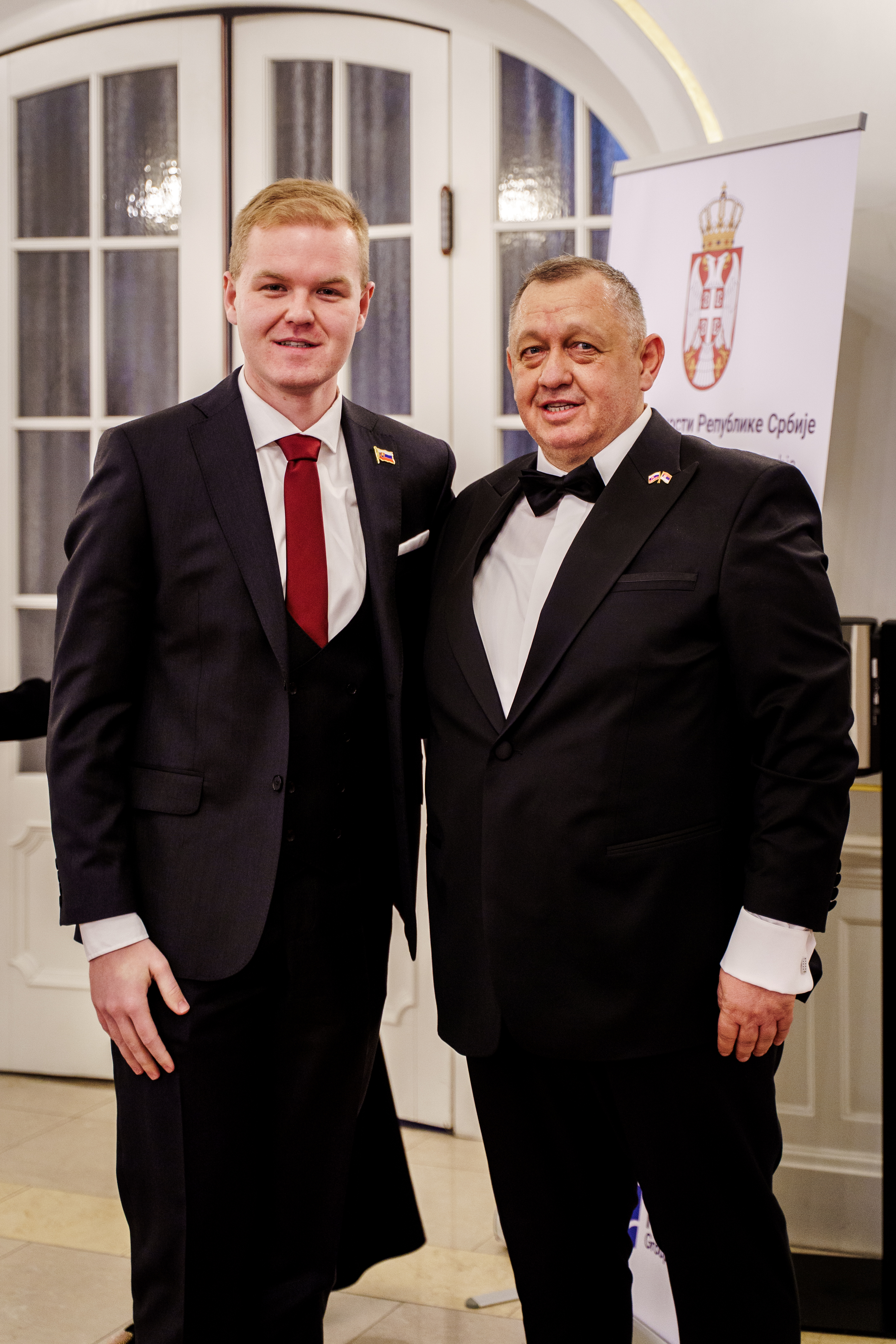 Пријему је присуствовала висока делегација Републике Србије, коју је предводио Милош Вучевић, изасланик председника Републике Србије Александра Вучића. У делегацији су били потпредседник Владе и министар унутрашњих послова Ивица Дачић, министарка заштите животне средине Сара Павков, министарка унутрашње и спољне трговине Јагода Лазаревић, министар правде Ненад Вујић, министар спорта Зоран Гајић и министар културе Никола Селаковић.