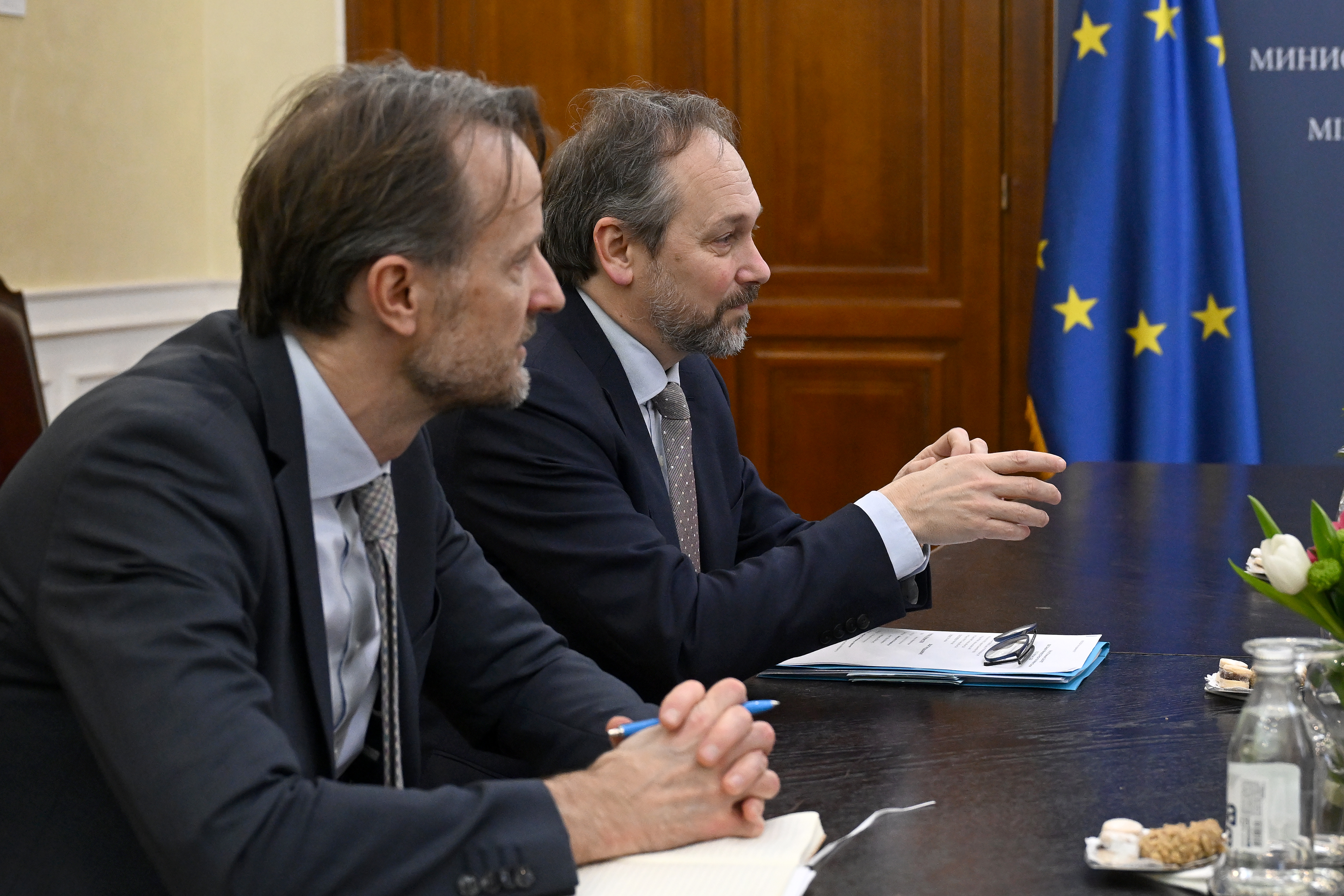 Министар Ђурић са замеником генералног директора за регион Западне Европе у ЕЕАС Емануелом Жиофреом 09. феб 2026.