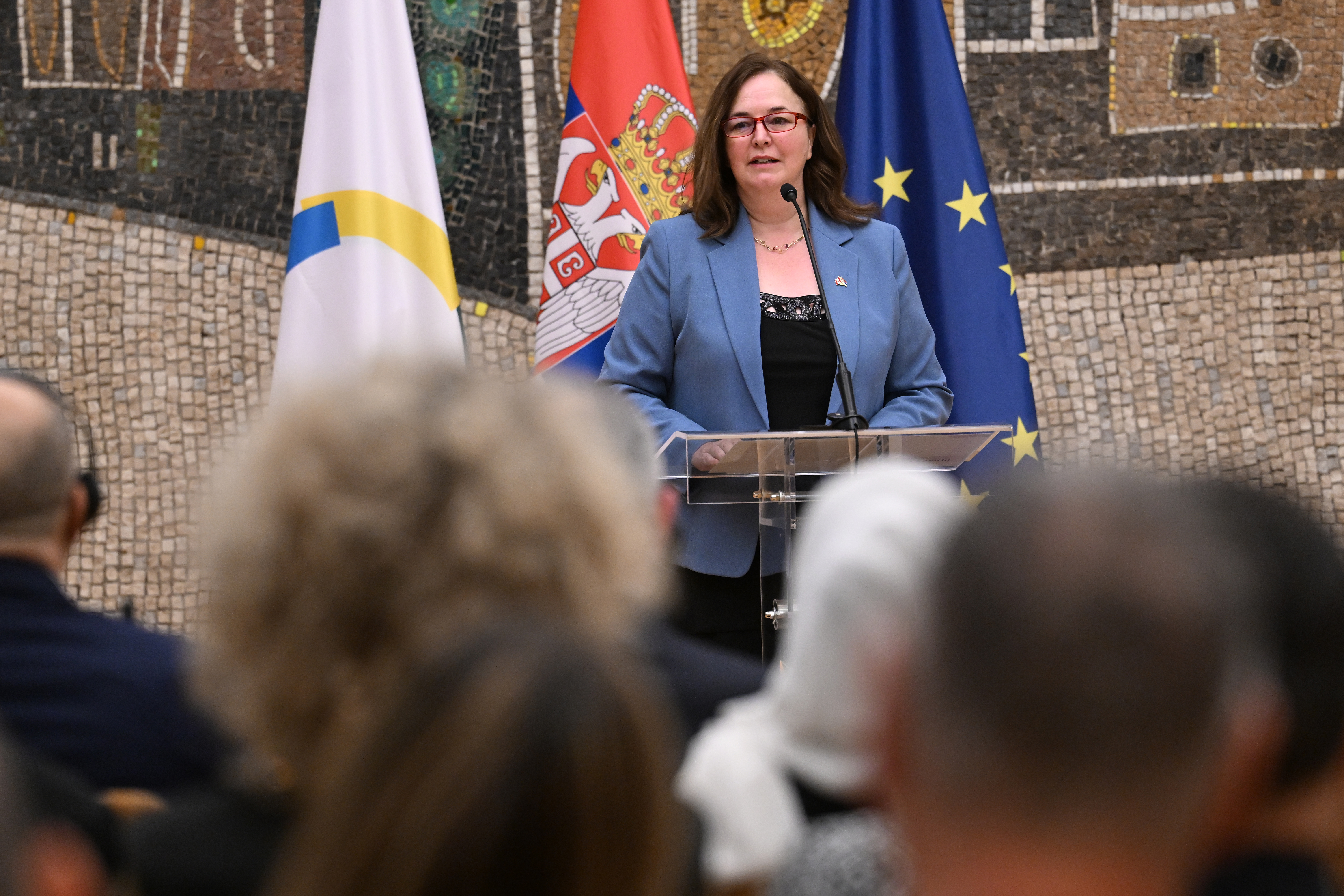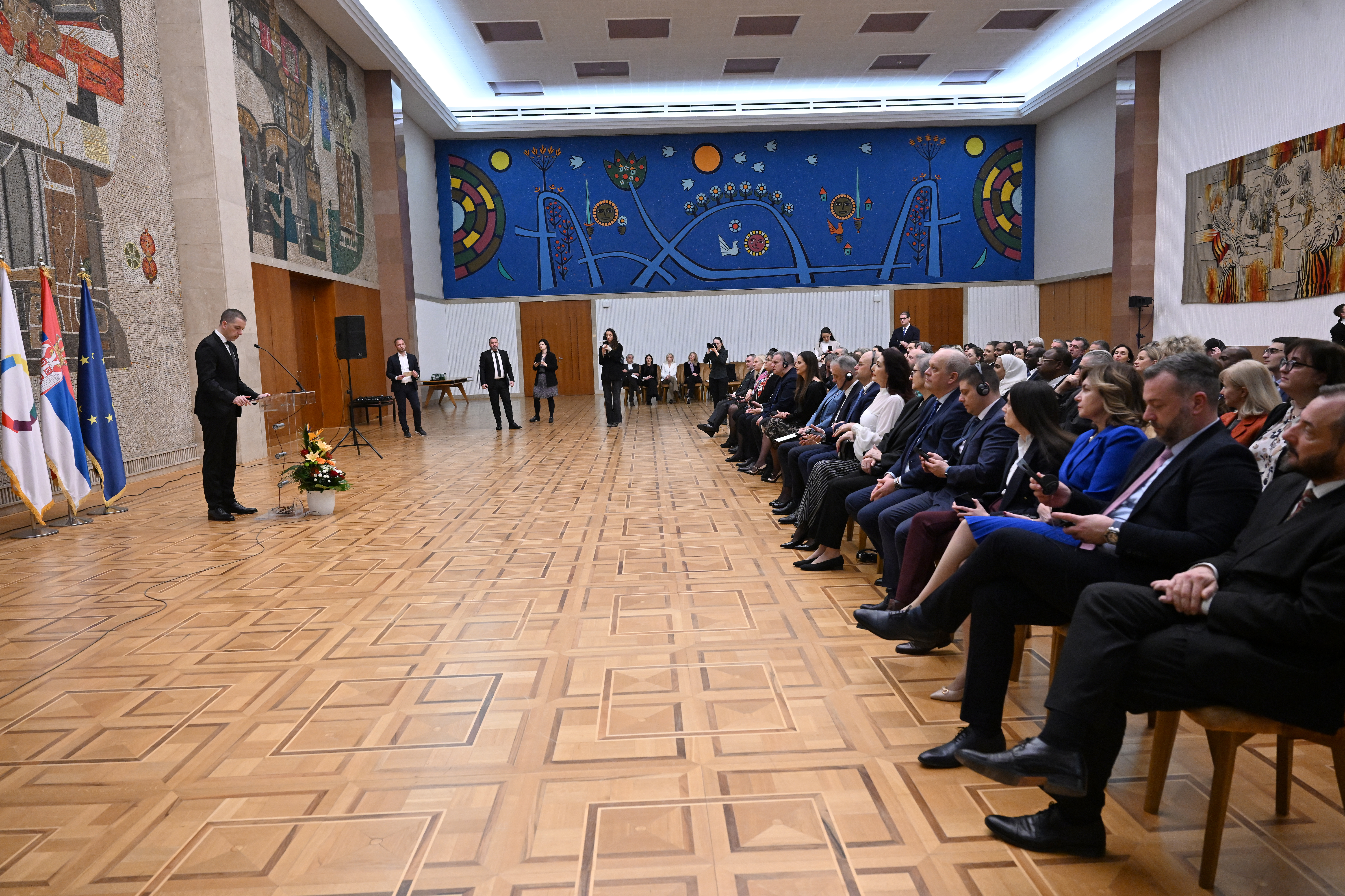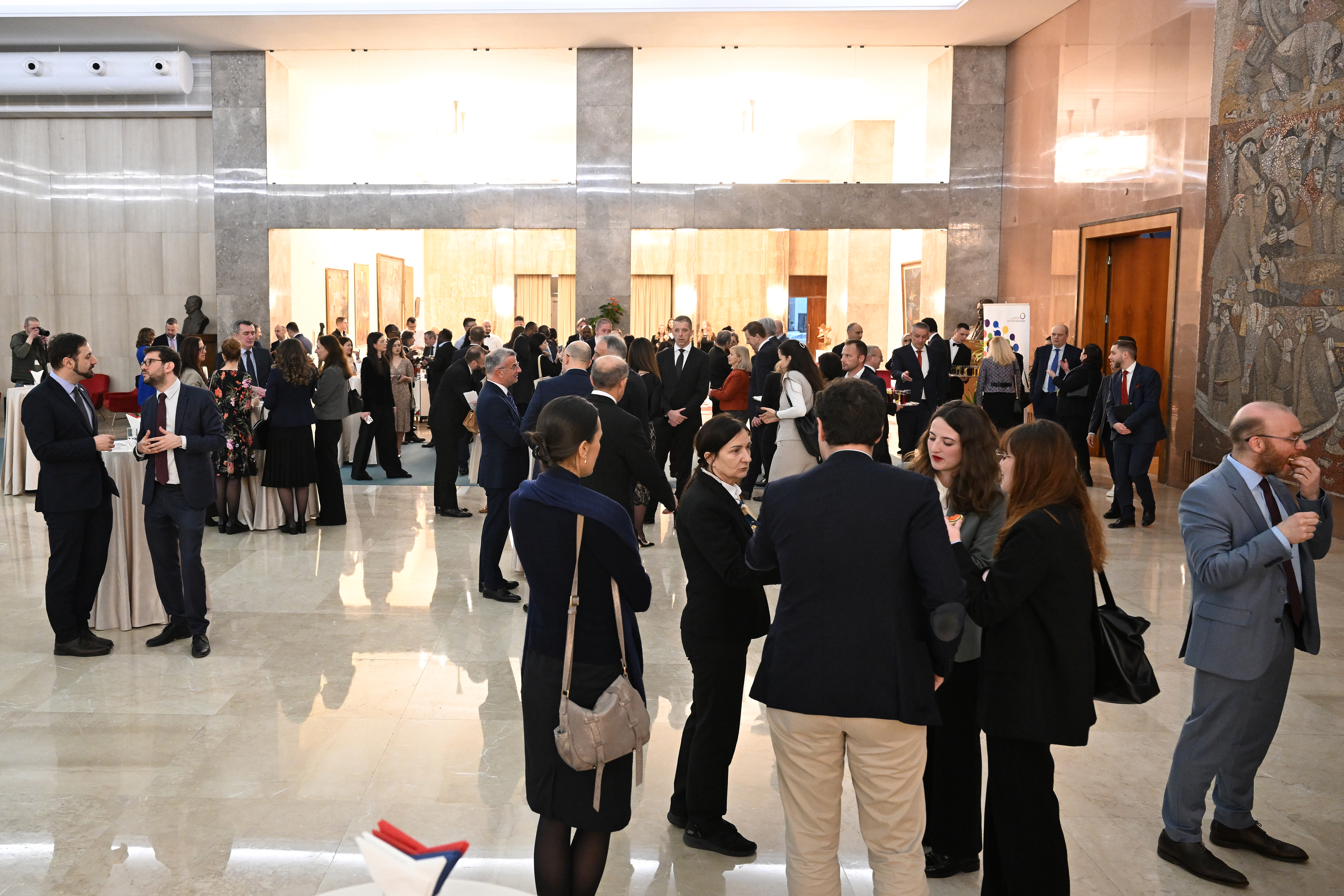 На отварању Месеца Франкофоније обратила се наша колегиница и супруга председника Републике Србије Тамара Вучић, као и амбасадорка Канаде у Србији Мишел Ли Камерон, у својству председнице Групе франкофоних амбасадора у Србији.
