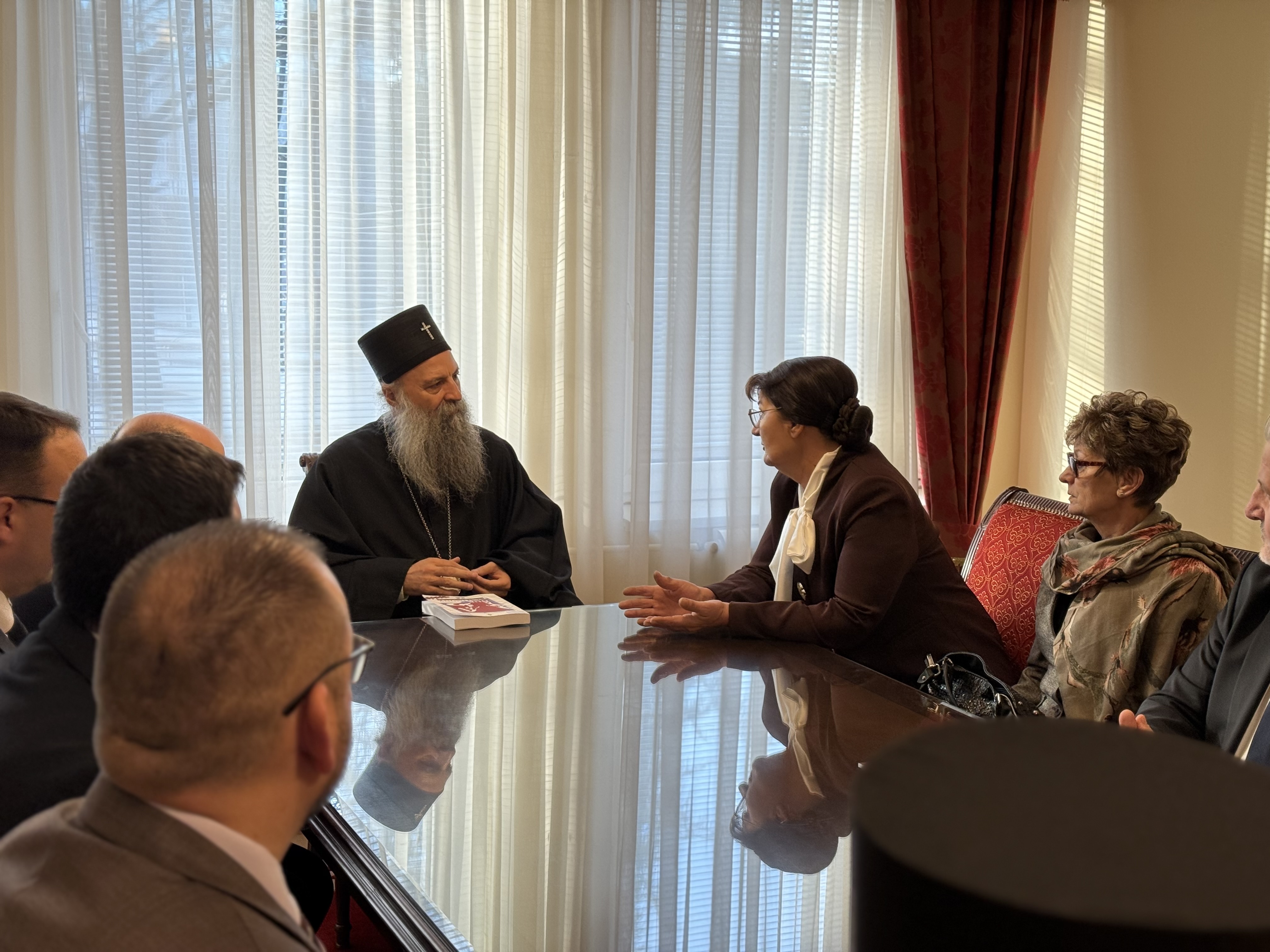 Kozarev conveyed the greetings of Minister Marko Đurić and briefed the Patriarch on the promotion of the second volume of the book “Our Testimony – Women Victims of War from Republika Srpska 1992–1995,” to be held today at the premises of the Ministry of Foreign Affairs. He noted that, in addition to the Ministry, the implementation of the project—conducted in cooperation with the Association of Women Victims of War—was supported by the aforementioned institutions, with the engagement of Ambassador Vranješ. He emphasized that the primary objective of the joint efforts invested in the preparation of the book was guided by