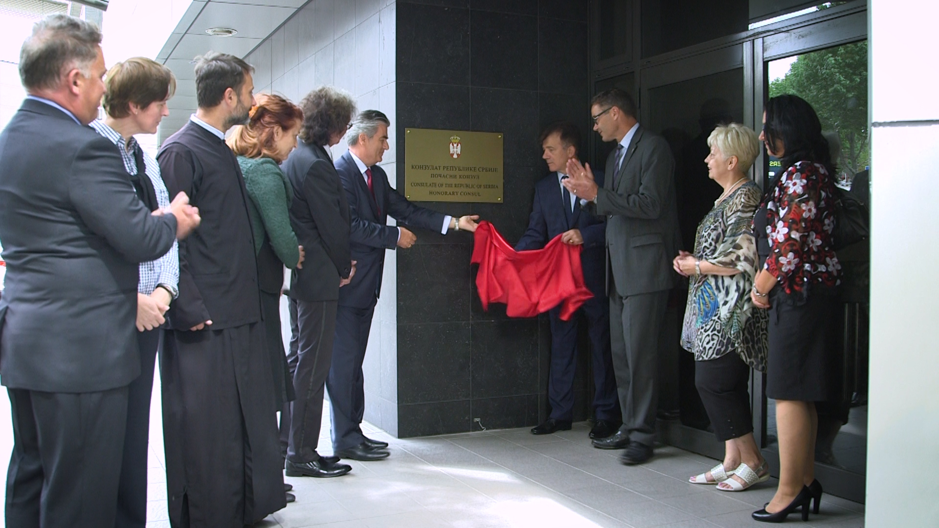 Otkrivanju table sa nazivom Konzulata i podizanju zastave Srbije prisustvovali su Sajmon Taker, direktor Kancelarije novozelandskog Ministarstva spoljnih poslova i trgovine u Oklandu, konzuli i počasni konzuli sa sedištem u Oklandu, pripadnici srpske zajednice i sveštenici SPC na Novom Zelandu, kao i predstavnici akademske i poslovne zajednice.