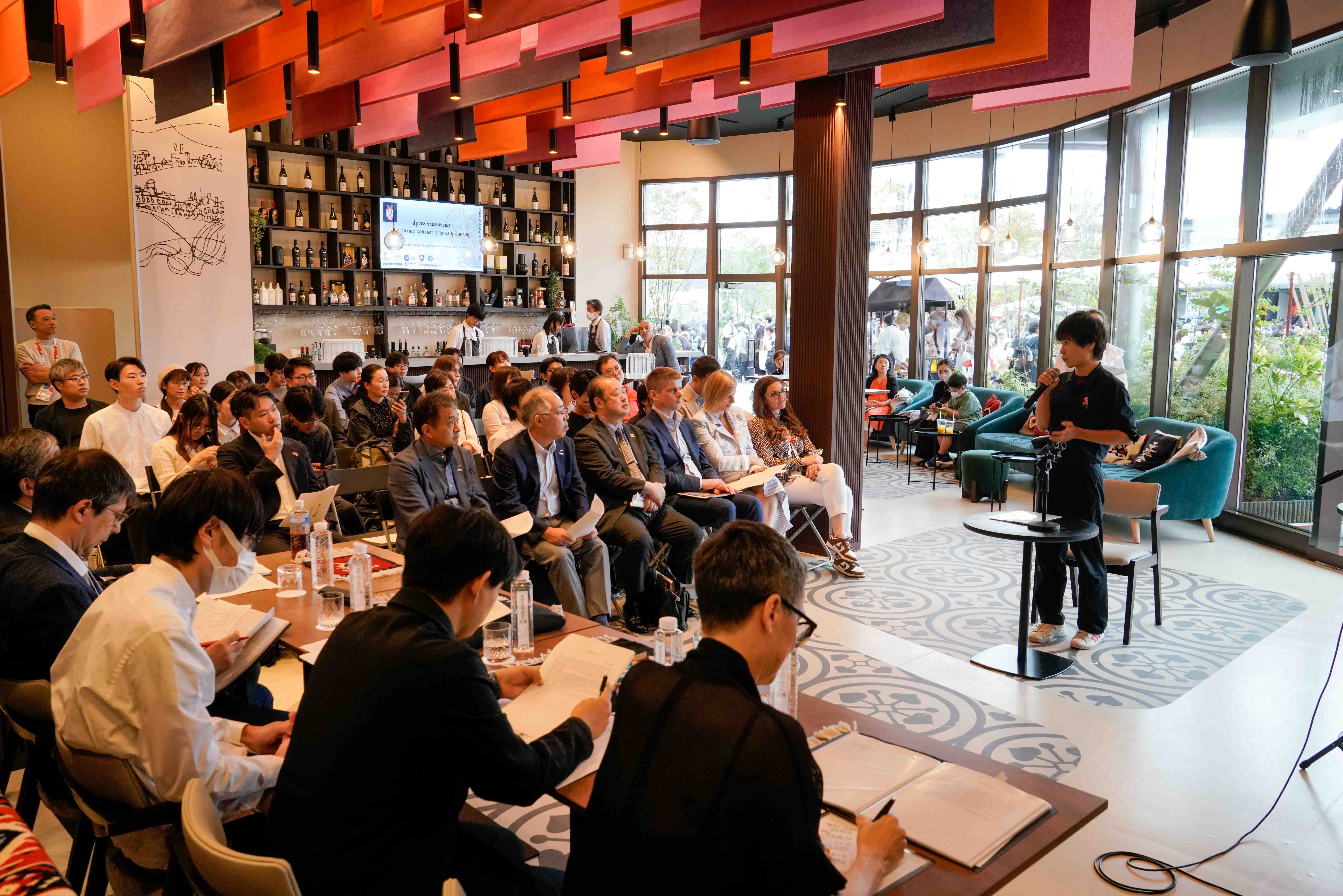 У Павиљону Србије на Светској изложби у Осаки одржано је Друго такмичење у знању српског језика у Јапану. Такмичење је организовала Амбасада Републике Србије у Јапану, у сарадњи са тимом Србије за Експо 2025, Градским универзитетом у Кобеу и Универзитетом у Осаки, а организацију су подржали Министарство спољних послова Јапана, Почасни конзулат Републике Србије у Осаки и Друштво пријатељства Јапан-Србија. Такмичењу је присуствовао Арно Гујон, директор Канцеларије за јавну и културну дипломатију.
