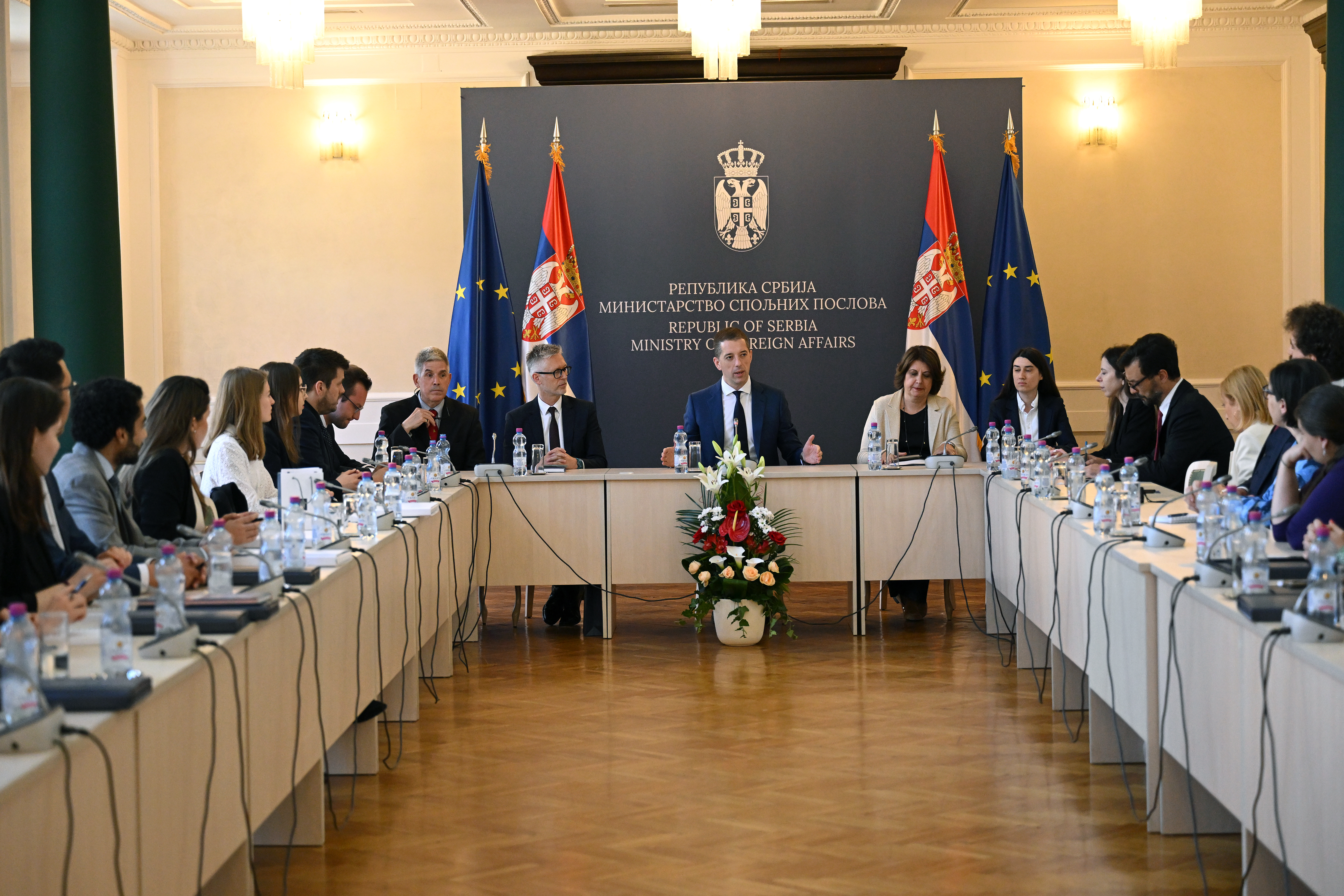 У разговору са групом професора и студената из чак 16 земаља, министар Ђурић је представио приоритете српске спољне политике, нагласивши да пуноправно чланство у ЕУ остаје наш стратешки циљ.