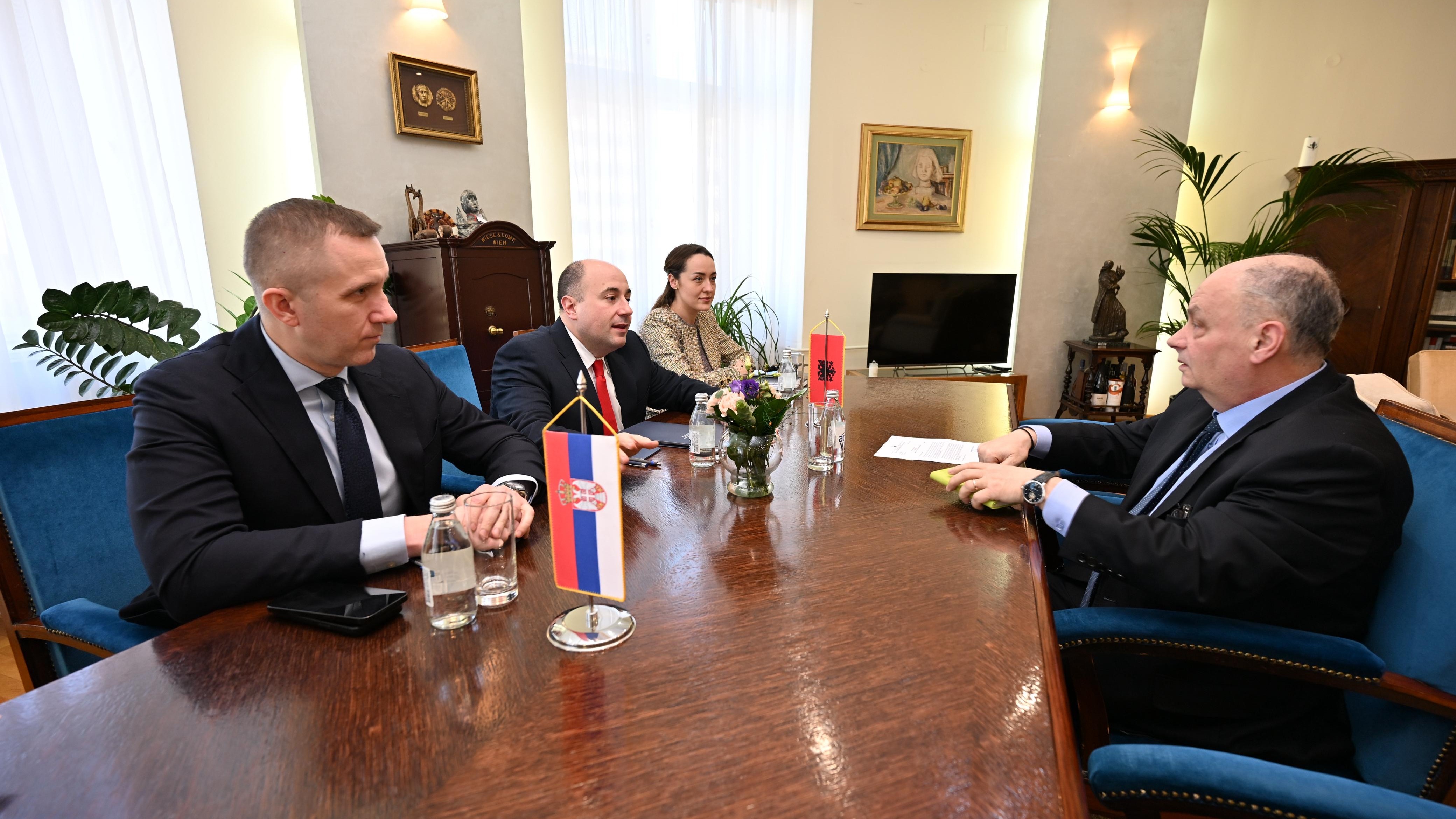 Изражен је обострани оптимизам у погледу будуће сарадње имајући у виду ступање на дужност новог министра за Европу и спољне послове Албаније Ферита Хоџе. Потврђена је опредељеност за даље унапређење односа у циљу доприноса развоју и стабилности региона.