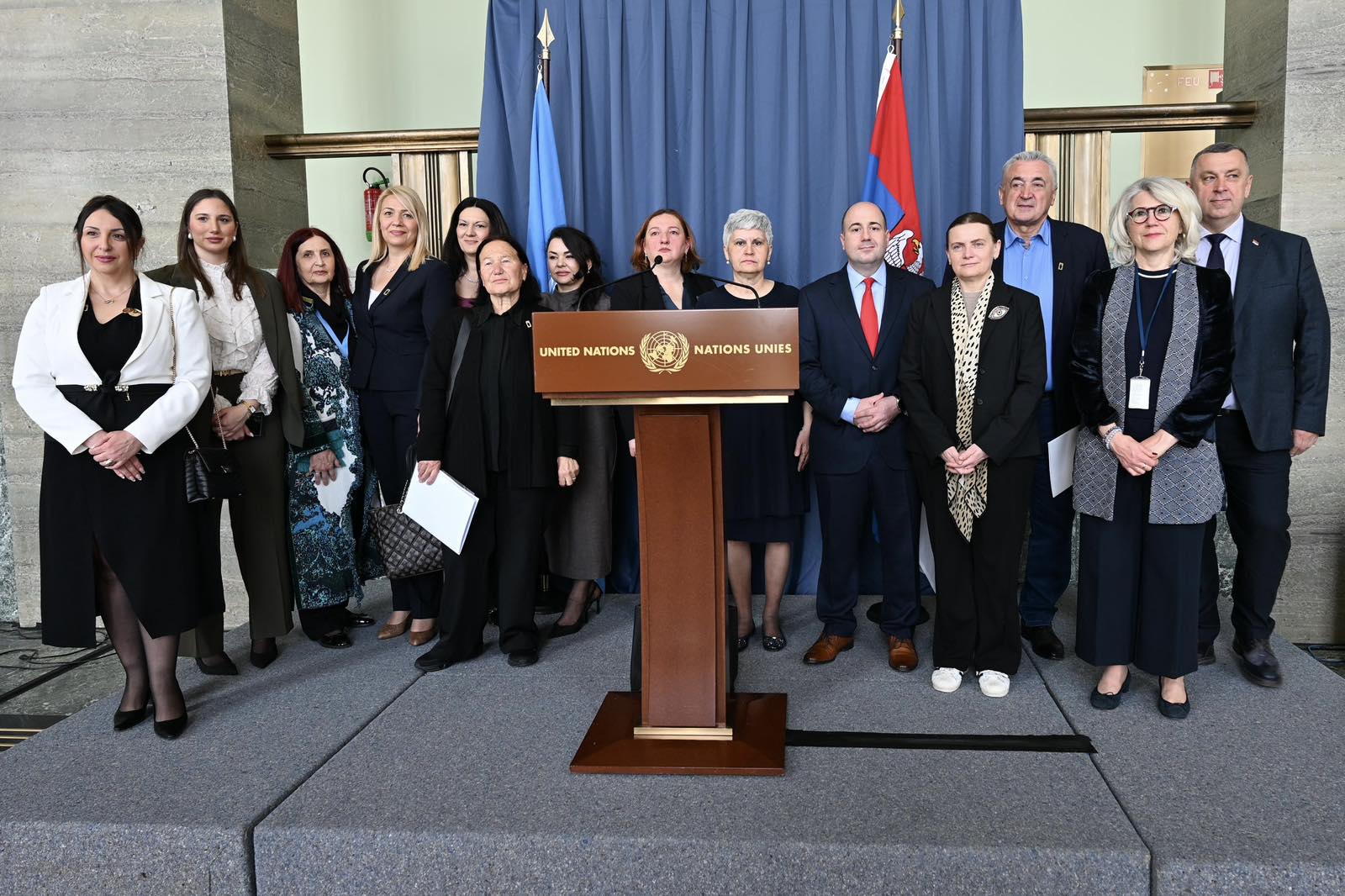 Пренео је захвалност и Канцеларији Уједињених нација у Женеви и госпођи Лидији Григоревој, шефици Кабинета генералног директора Канцеларије УН, на присуству и обраћању овом за нас веома важном догађају, као и свим осталим члановима тима УН у Женеви.